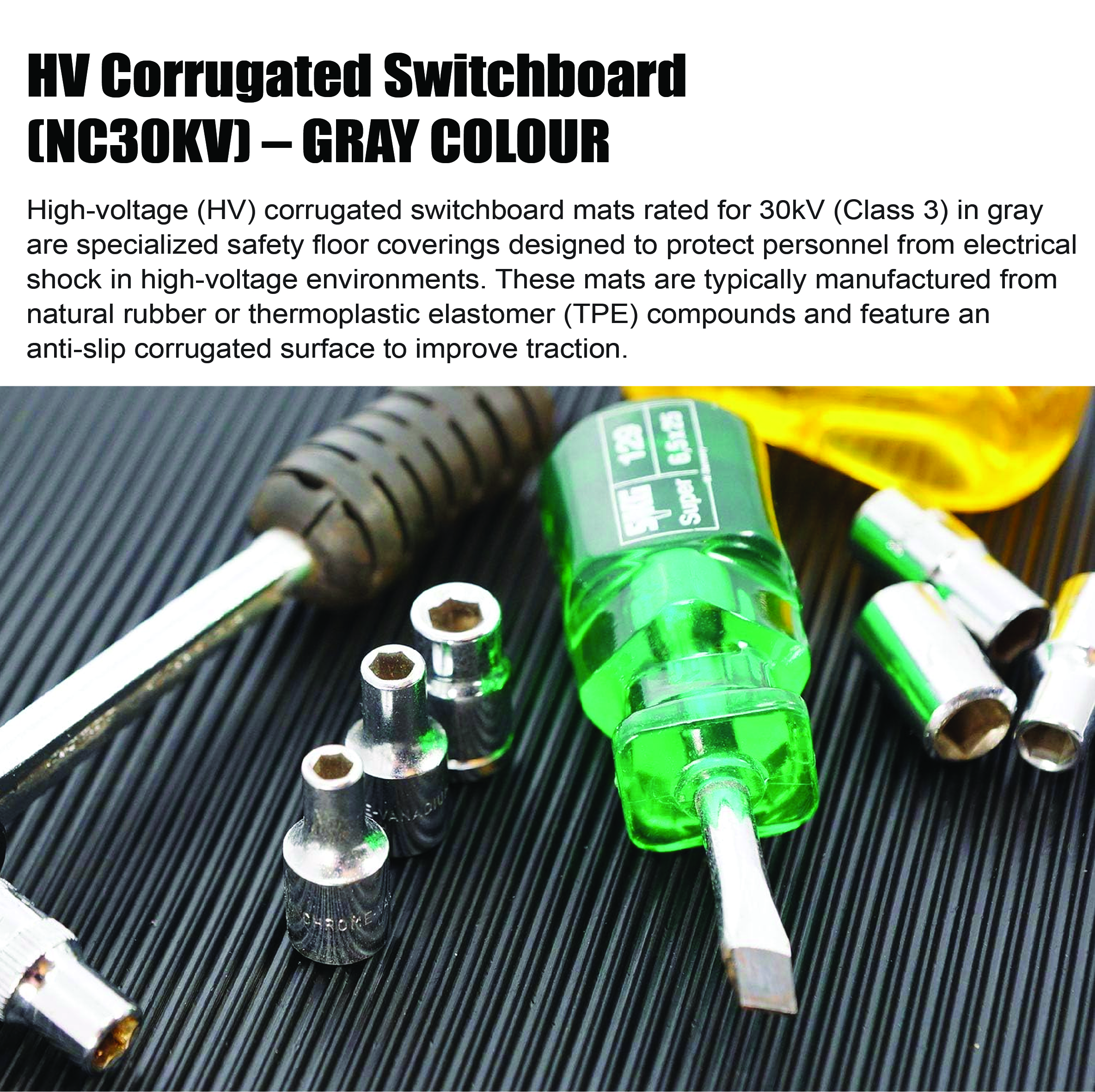 Electrical Insulation mats are made of rubber. Rubber, due to its properties of resistivity, is used in many industrial applications throughout industry to insulate and protect; it is an obvious choice for electrical safety matting and is tested vigorously to ensure the level of protection is met.