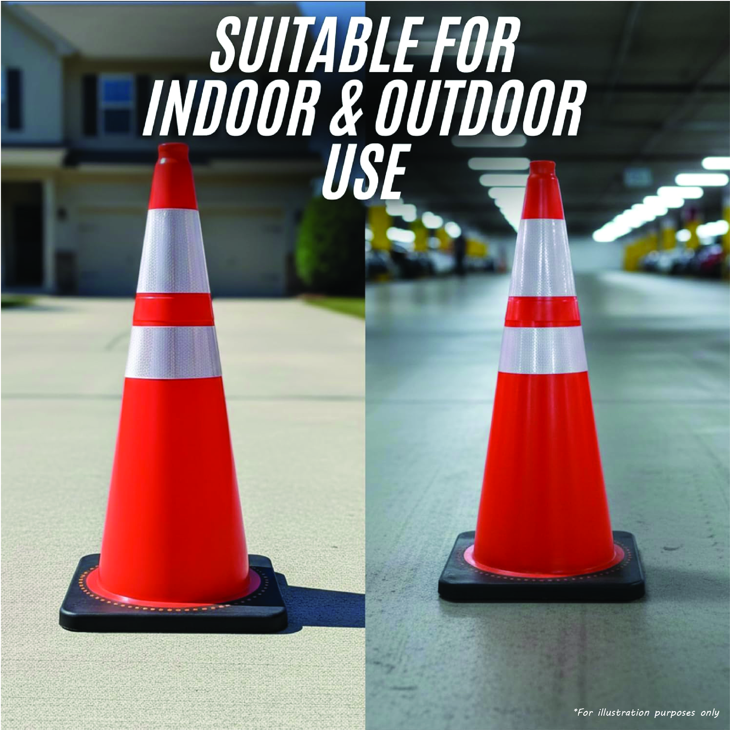Traffic cones or road cones provide visible cues for people and should be used to show pathways and exits to parking lots and underground parking spaces at malls and office complexes.