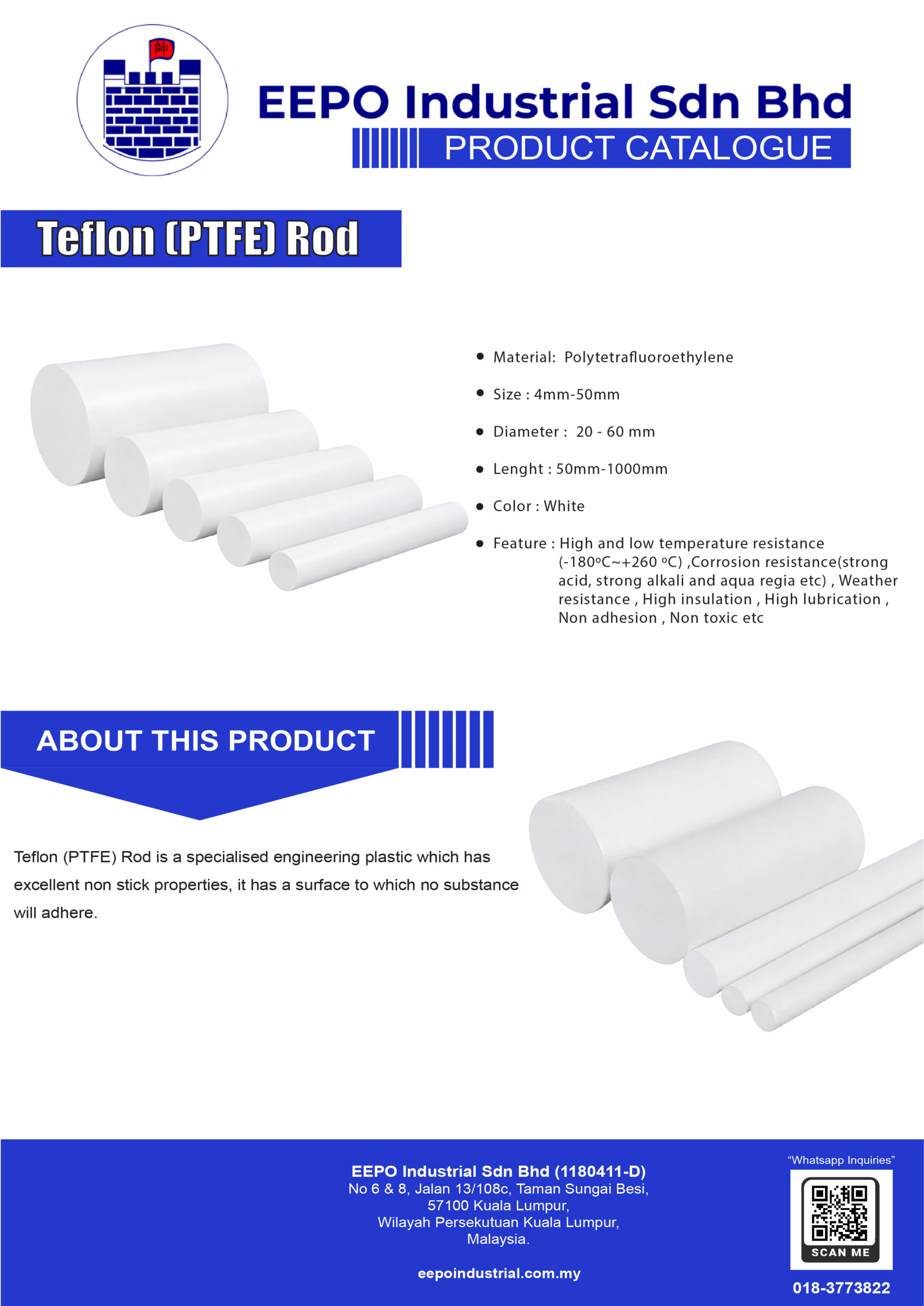 Polytetrafluoroethylene (PTFE), commonly known by the brand name Teflon, is a high-performance synthetic fluoropolymer. When manufactured into rod form, it serves as a versatile raw material for machining components that require extreme chemical resistance or low friction.